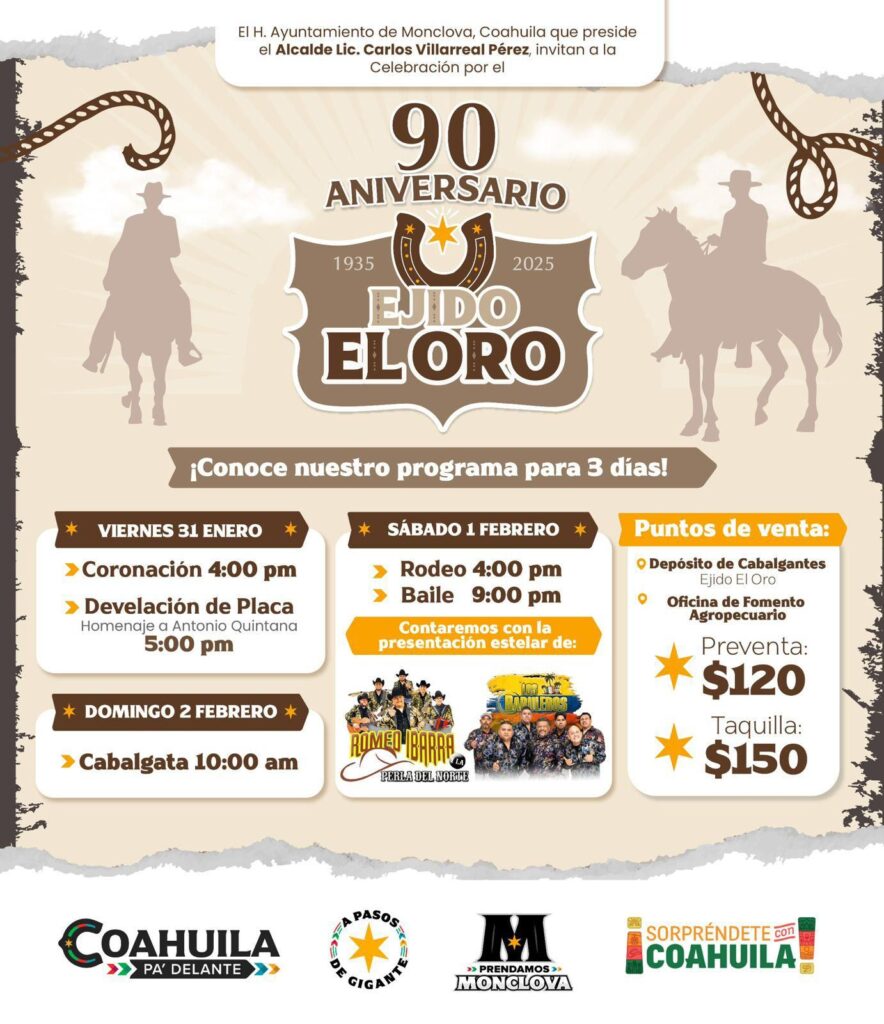 El Gobierno Municipal de Monclova invita a todas las familias a sumarse a esta celebración que no solo honra la identidad y la historia del Ejido El Oro, sino que también fortalece los lazos comunitarios y promueve el apoyo mutuo. «Esperamos ver a todos disfrutando de estos tres días de fiesta, porque juntos somos más fuertes», concluyó el alcalde Villareal.